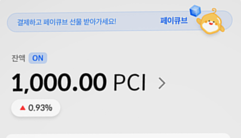 정상적으로 리워드 코드를 입력하여 가입하셨다면 정상적으로 1 PCI가 지급된 것을 확인하실 수 있습니다.