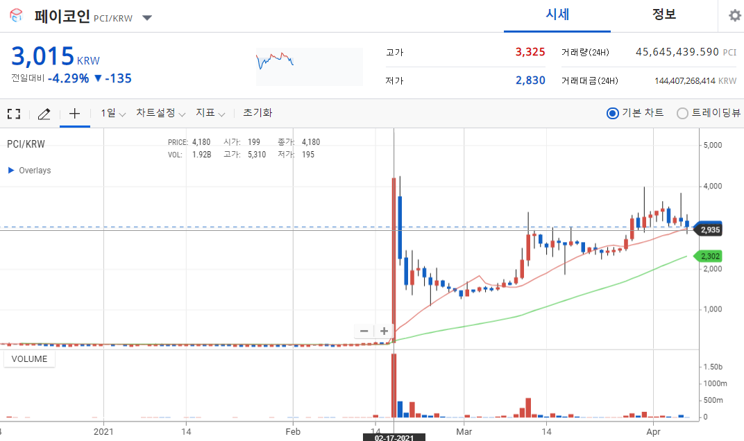 시세는 현재 기준 3,015원이며 올해 초 200원대의 페이코인이 급상승하며 4000원대를 돌파 후 조정이 들어간 후 다시 증가 추세를 보이고 있는 것을 볼 수 있습니다. 지속적인 관리와 여러 가지 호재들로 점점 관심도가 높아지고 있습니다. 지금은 페이코인으로 사용할 수 있는 가맹점이 적지만 점차 늘어갈 가능성이 높으며 실생활에 결제가 가능하다는 것에 큰 의미와 앞으로의 발전 가능성이 높다고 생각합니다.