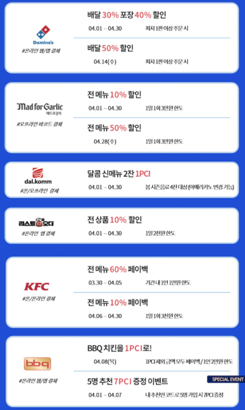 KFC, BBQ, 달콤 등 아래의 그림 참고 부탁드립니다.