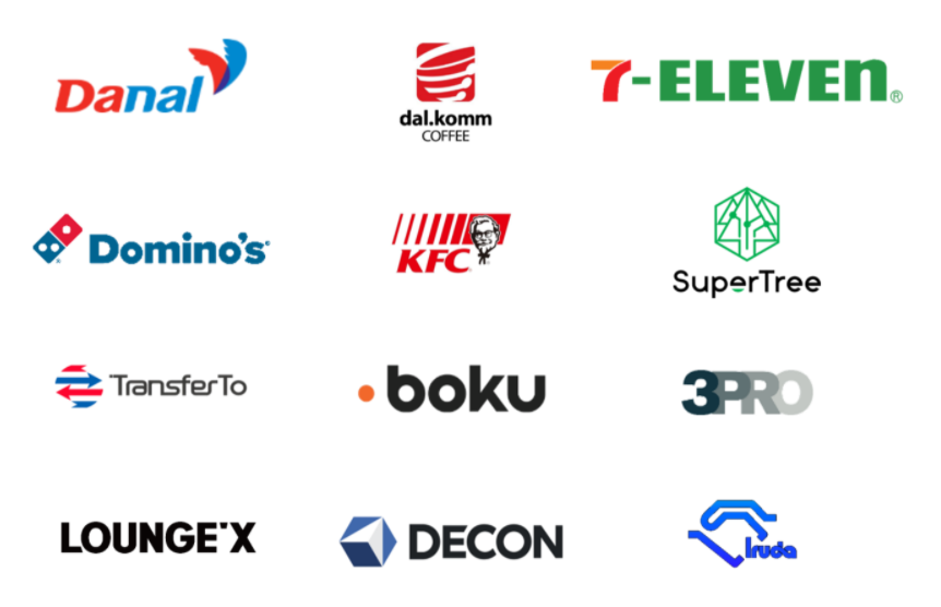 다날을 비롯해 달콤커피, 세븐일레븐, 도미노피자, KFC 등 그리고 Cross Border payment를 실현하기 위한 해외 제휴사 및 기술 제휴, 컨설팅사 등 많은 파트너들로 구성되어 있습니다.
