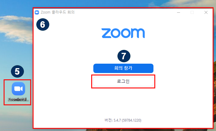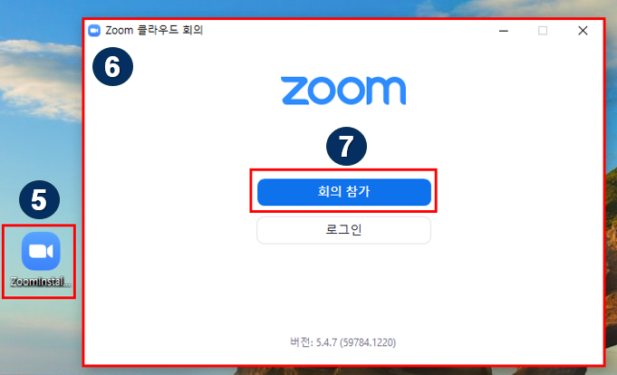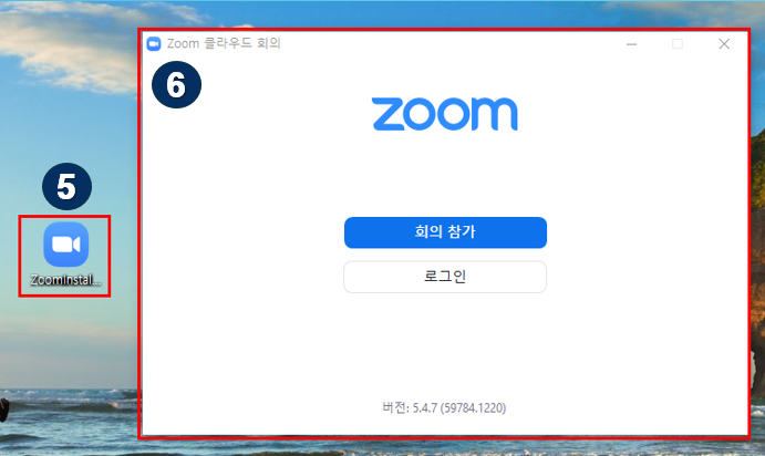 6. 아이콘 클릭 시 Zoom 클라우드 회의 창이 실행됩니다.