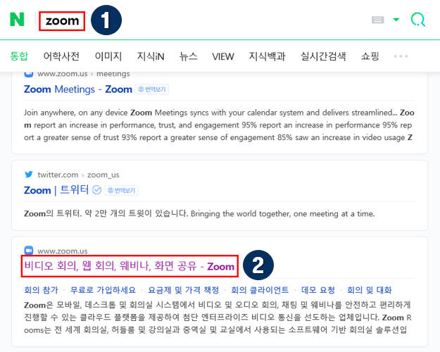 1. 네이버 포털 사이트에 ZOOM이라고 검색해 주십시오.