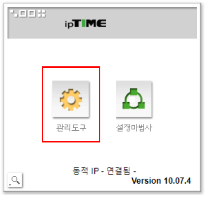 ④ 로그인 후 iptime 화면의 관리도구를 클릭해 주십시오.