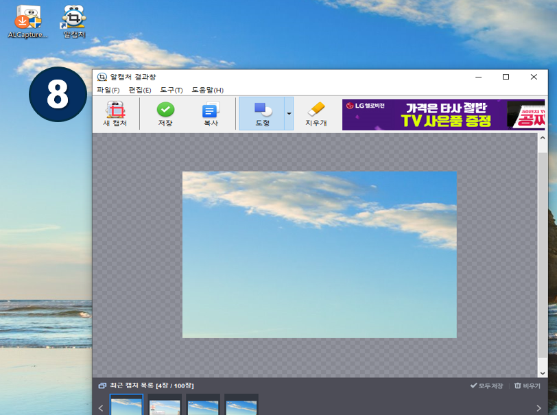 ⑧ 드래그를 이용한 범위를 지정하셨다면 캡쳐 결과 창이 나오며 결과물을 저장이나 복사를 하실 수 있어요.