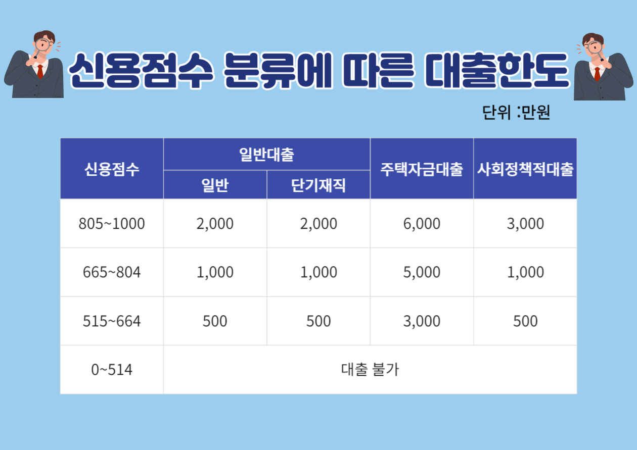 공무원 연금 대출 한도는 종류 및 고객 신용점수에 따라 신청가능한 최대한도가 달라질 수 있기 때문에 아래 그림표를 참고하여 진행하시길 바랍니다.