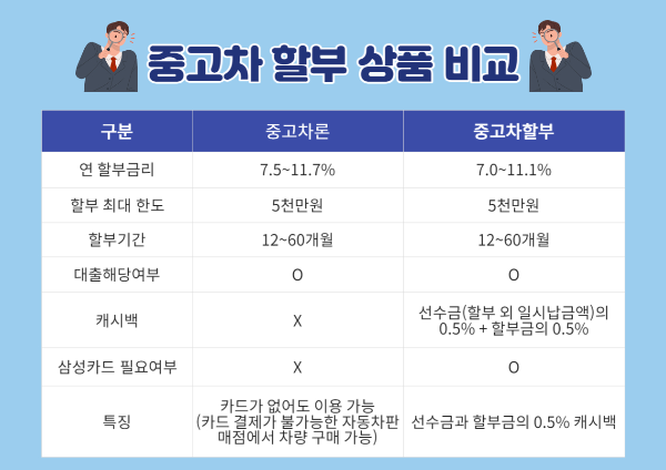 1. 삼성 카드 중고차 할부 대출 종류 및 상품 비교