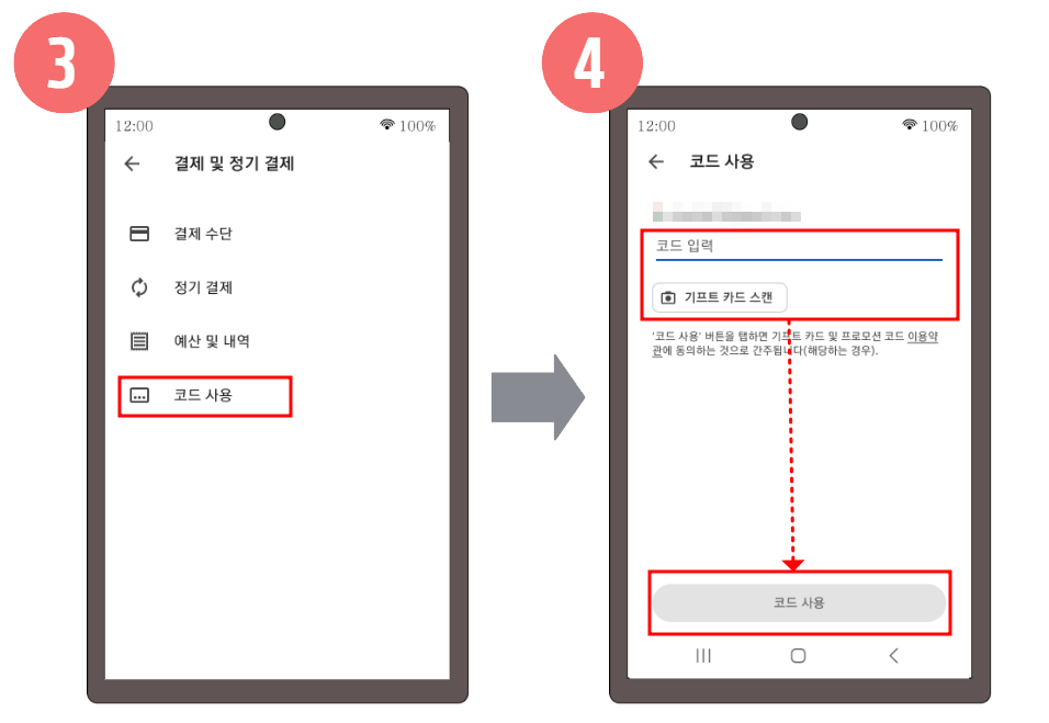 1-3. 구글 기프트 카드 코드 등록 방법