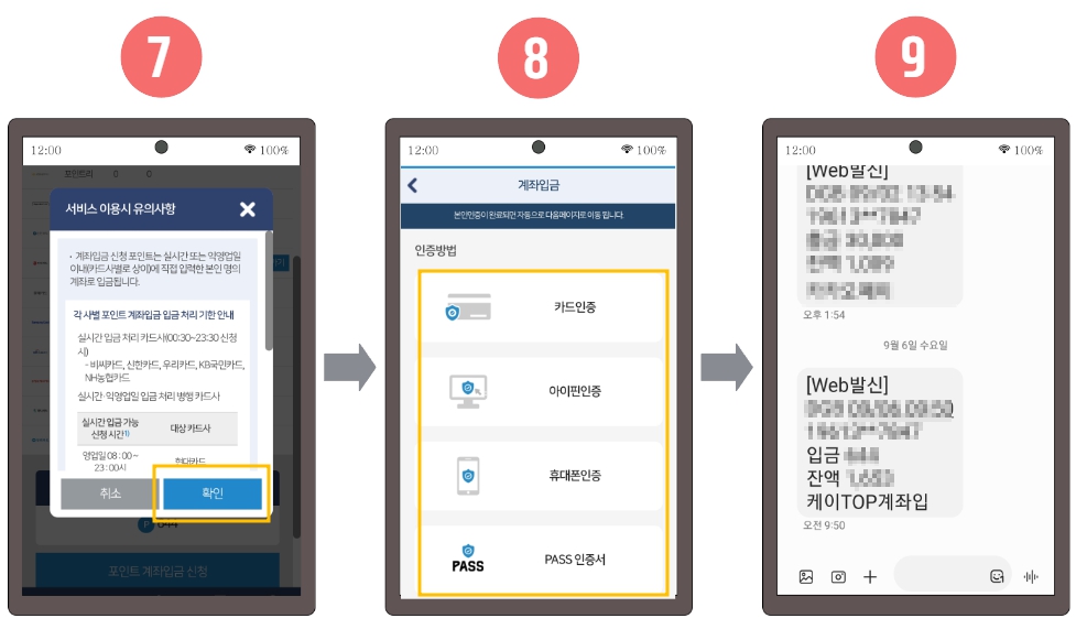 - 카드 포인트 통합 조회 및 입금 신청 순서