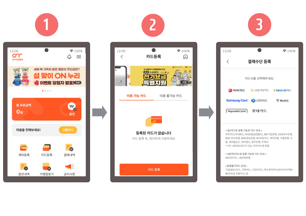 3) 전통시장 온누리 상품권 신용카드 결제 방법
