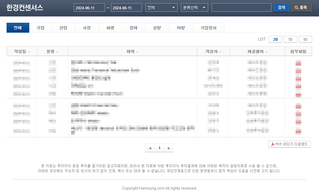 이 사이트는 증권분석사 자격증을 보유한 애널리스트들이 특정 기업이나 산업에 대한 전망을 분석한 자료들을 올려놓은 곳으로 일반 개인투자자의 경우 이러한 전문적인 의견을 내기 어렵기 때문에 한경컨센서스 주식 정보를 잘 활용하면 투자 시 큰 도움이 될 수 있습니다.