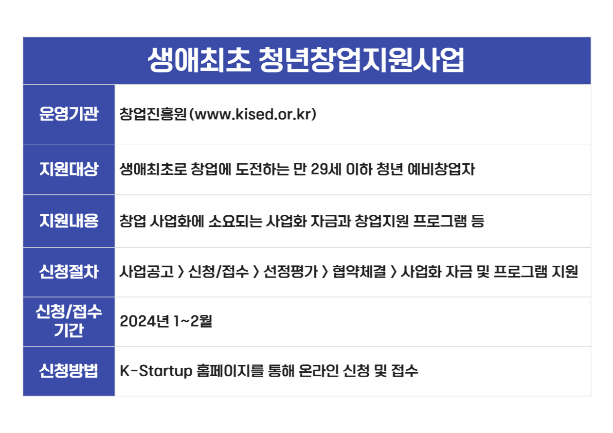 1. 생애최초 청년창업 지원사업