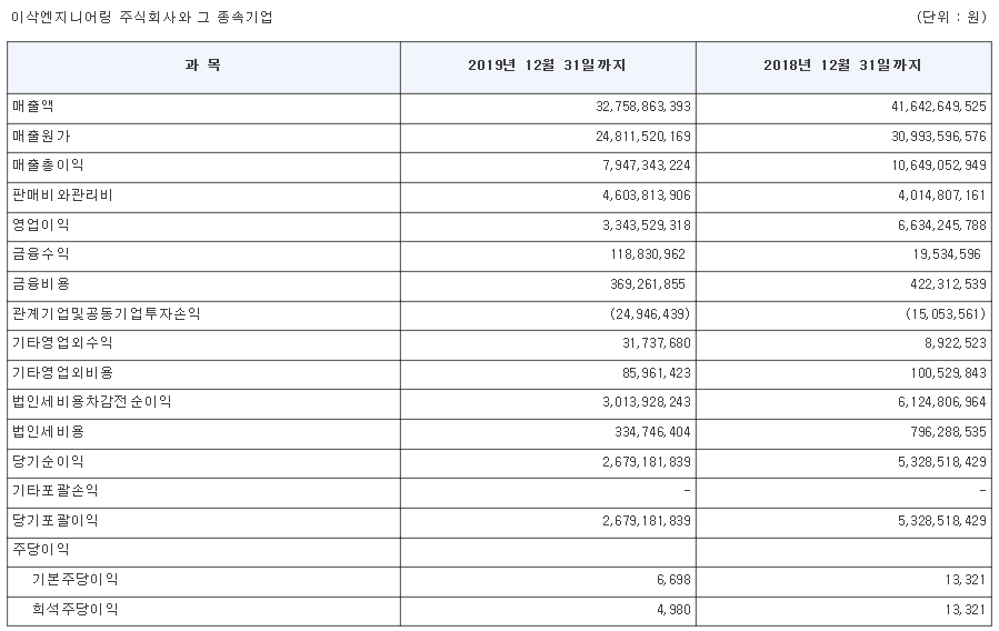 기업 관련 내용 : 주요 고객사로 현대중공업, 삼성중공업, 두산, 농심, 한솔, 현대일렉트릭 등 큰 기업들과 거래하고 있으며 SIEMENS, 아마존웹서비스, 삼성엔지니어링, 한국전력공사 전력연구원 등 파트너로 등록되어 있습니다. 지난해 한전 연구원에서 산업용 소프트웨어 기업 지멘스인더스트리소프트웨어(주)와 이삭엔지니어링이 함께 차세대 변압기 센서 진단 기술의 사물인터넷 플랫폼 활용을 위한 해외 사업 활성화, 인프라 구축을 위하여 MOU를 체결하였습니다. 지난해 448억원 정도의 매출과 영업이익 53억을 달성하여 전년도 대비 약 37%, 58% 증가하였습니다.